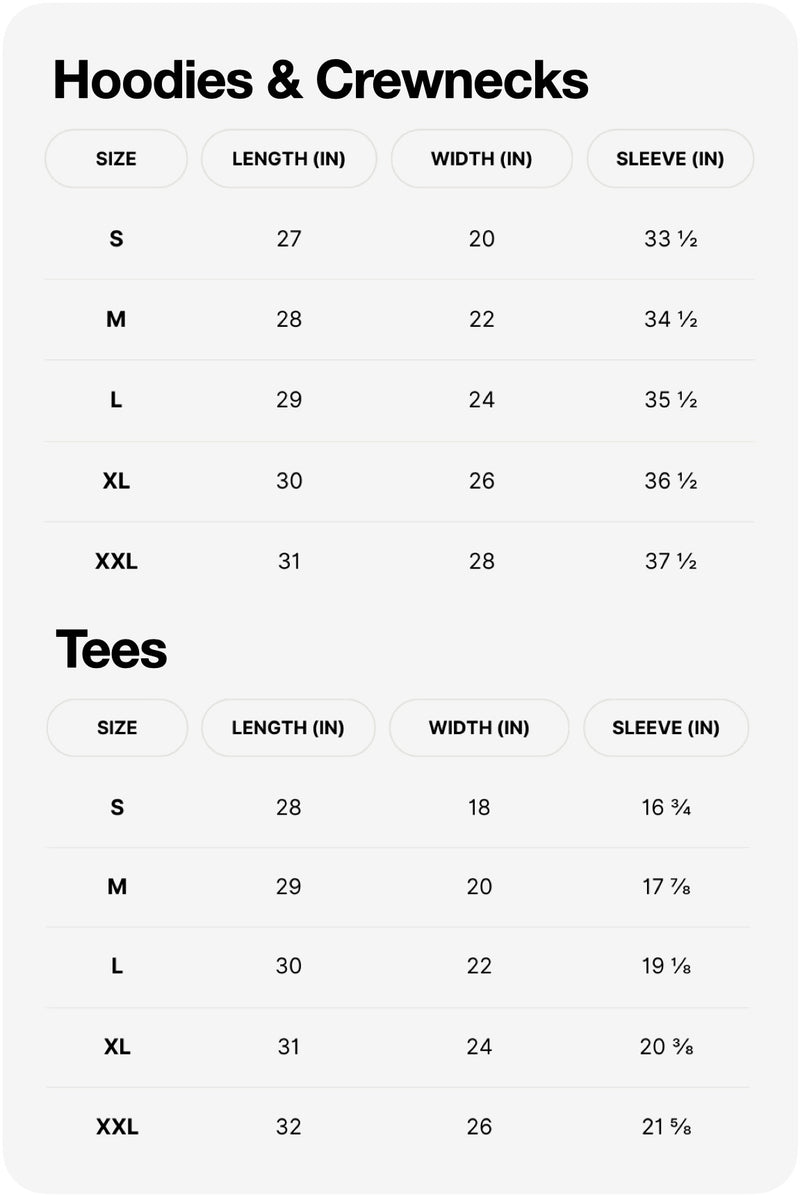 All sizes below are measured in inches. For the best fit, compare these measurements with a shirt you already own.